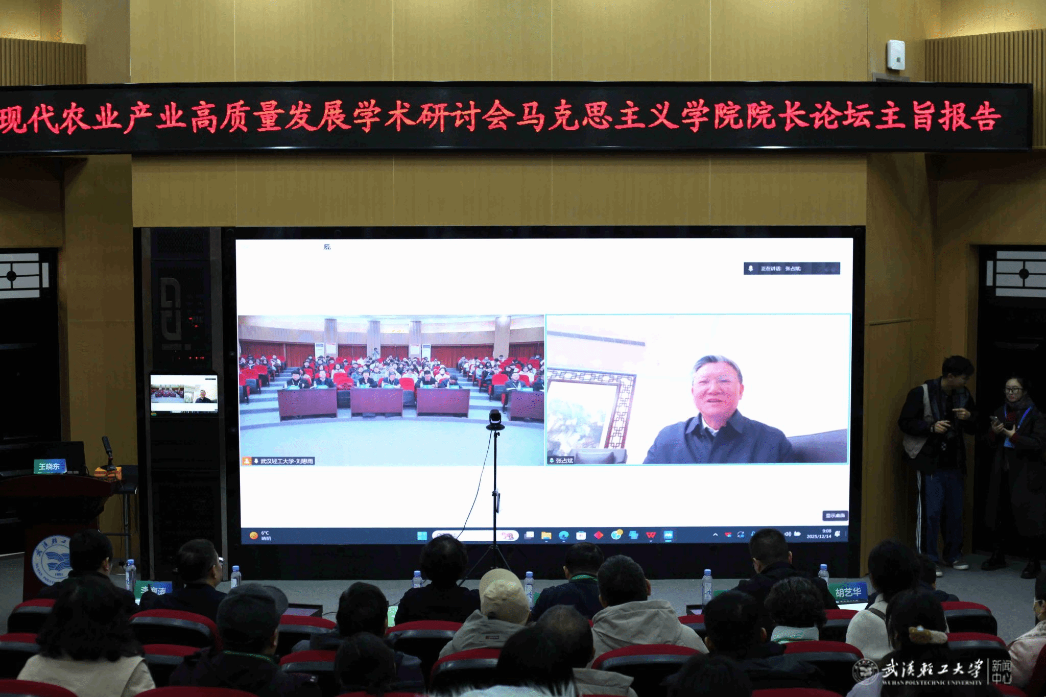 12月14日,由我校主办、马克思主义学院和湖北大食物观与现代农业发展研究中心承办的“现代农业产业高质量发展学术研讨会”在学校金银湖校区举行。中共中央党校(国家行政学院)中国式现代化研究中心主任、国家哲学社会科学一级教授张占斌,湖北省十四届人大常委会委员、省人大教科文卫委员会副主任委员、华中科技大学马克思主义学院教授喻立平,全国涉农高校马院院长代表及新闻媒体、湖北乡(镇)长代表、企业代表、驻汉兄弟高校研究生代表及学校相关部门、学院负责人和研究生代表共300余人参会。校党委书记严冀钢出席开幕式并致辞。会议开幕式由校党委副书记、副校长金艳主持。