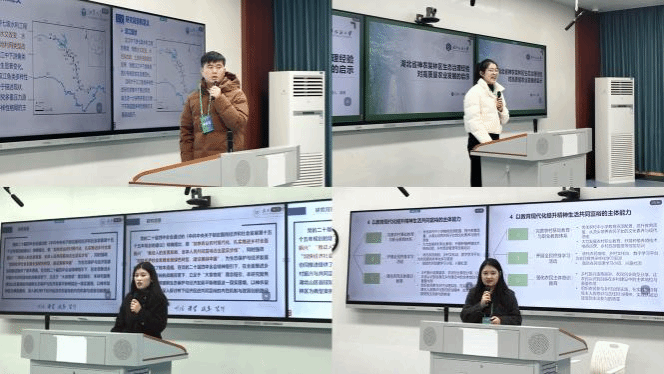 来自华中科技大学、华中师范大学、中共湖北省委党校、武汉纺织大学、江汉大学、武汉轻工大学等多所兄弟高校的八位研究生积极参与,围绕“现代农业产业高质量发展”这一主题,从农民精神富裕、特色农业产业、生态治理、生物多样性保护、党的领导、城乡新型城市化城镇化、林下经济、农文融合等多个维度展开了深入探讨,报告内容丰富多元,展现了青年研究者对现代农业复杂问题的深刻洞察与探索成果,体现了新一代农业科研人员将论文写在祖国大地上的使命担当。