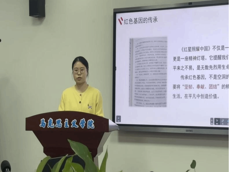 朱亚兰展示了埃德加·斯诺的著作《红星照耀中国》,她从信仰与理想的驱动力、历史记录的温度带领大家回顾了长征艰难历程以及长征精神的传承和意义,向同学们全面系统地介绍了《红星照耀中国》的精神内涵。