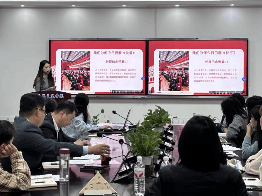 石梓怡分享了影视作品《长征》,该部影视作品通过宏大的叙事角度再现了那段波澜壮阔的革命征程。她说,我们今天欣赏这部作品,就是要弘扬长征精神、传承长征精神,坚定走好新时代的长征路。